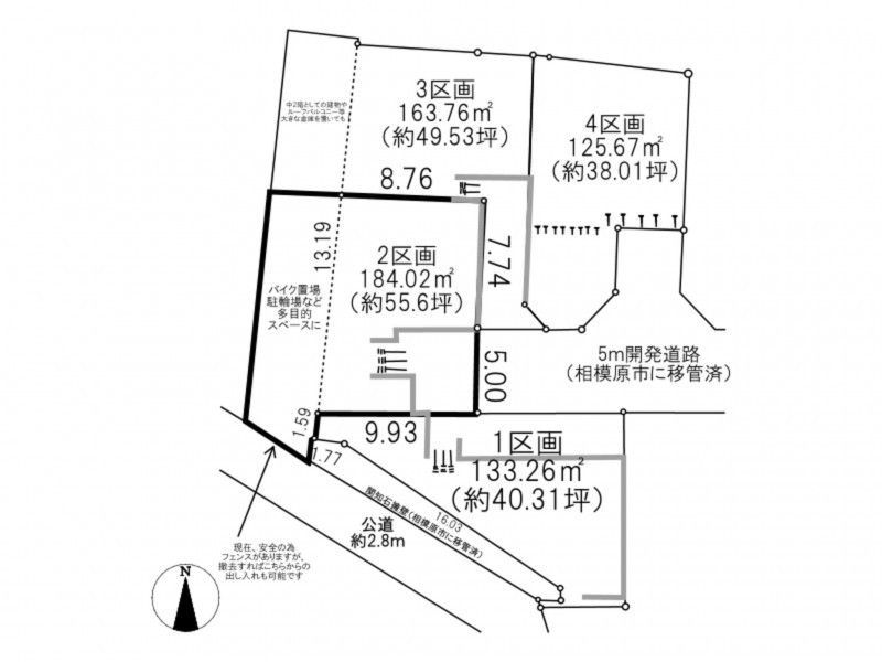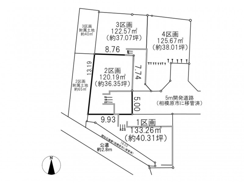 - ・接道は5mの開発道路(相模原市に移管済)です。