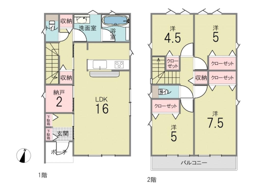 - カウンターキッチン、浴室乾燥機、シャンプードレッサー、浴室1坪以上、ウォシュレット、複層ガラス、モニタ付インターホン、 トイレ2箇所、床下収納、防犯カメラ