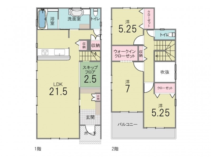 - カウンターキッチン、食器洗浄乾燥機、浴室乾燥機、シャンプードレッサー、洗面室収納、ウォークインクローゼット、複層ガラス、モニタ付インターホン、駐車場2台分、 トイレ2箇所、床下収納、室内物干