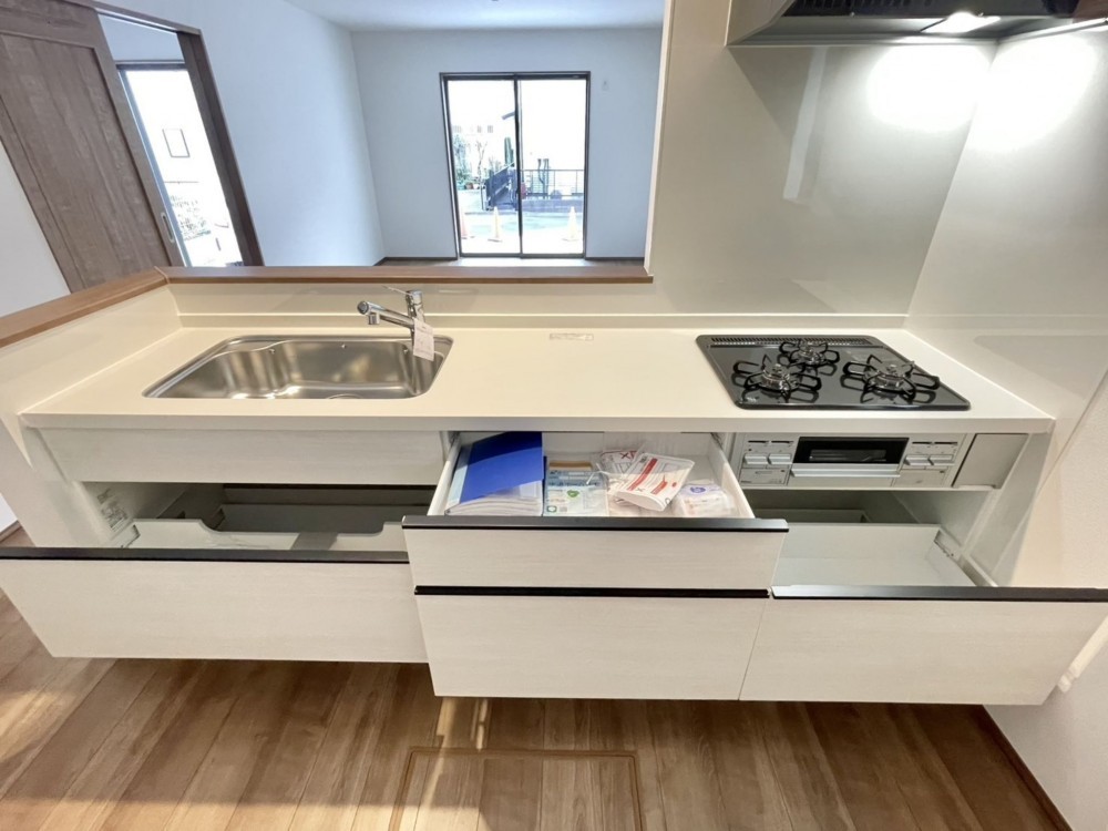 - 浴室乾燥機、ウォシュレット、ウォークインクローゼット、複層ガラス、モニタ付インターホン、駐車場2台分、 トイレ2箇所、床下収納