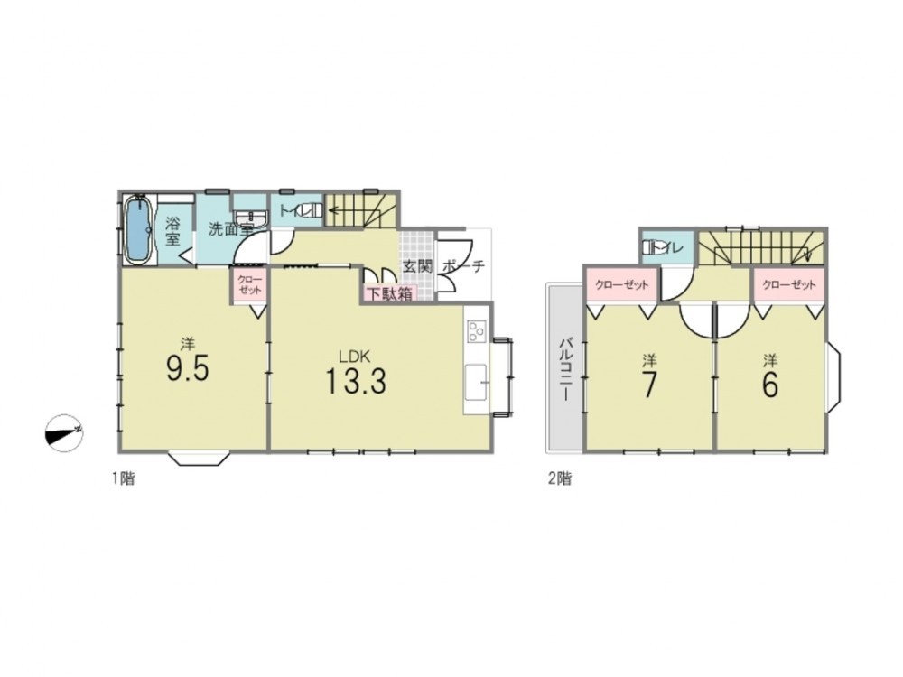 - シャンプードレッサー、浴室1坪以上、ウォシュレット、モニタ付インターホン、駐車場2台分、 トイレ2箇所、床下収納、平坦地
