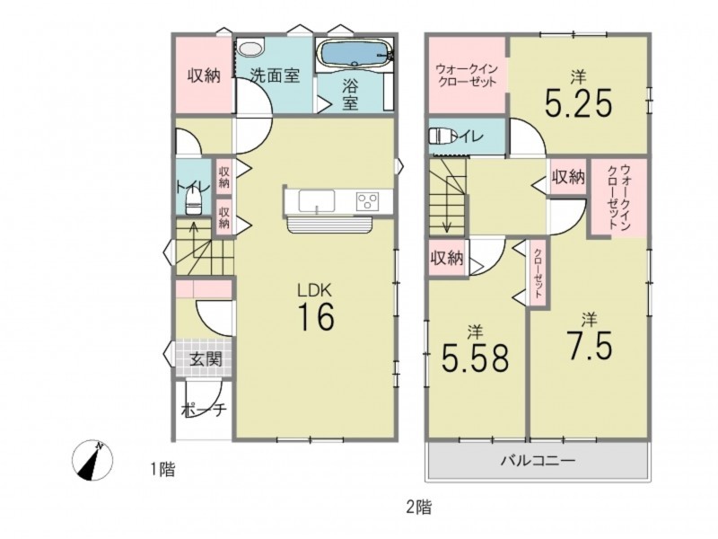 - 浴室乾燥機、シャンプードレッサー、ウォシュレット、モニタ付インターホン、駐車場2台分、 トイレ2箇所、床下収納、24時間換気システム