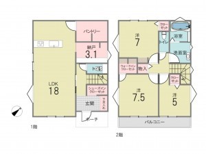 - ウォークインクローゼット、 トイレ2箇所、床下収納