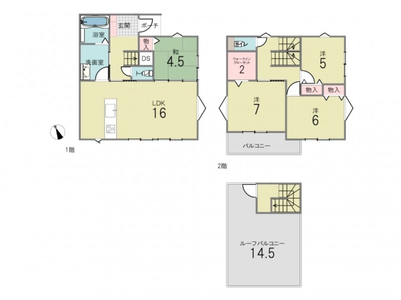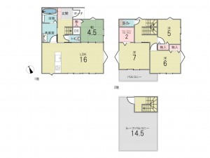 - 食器洗浄乾燥機、シャンプードレッサー、ウォシュレット、浴室TV、複層ガラス、モニタ付インターホン、駐車場2台分、 トイレ2箇所、床下収納、ルーフバルコニー