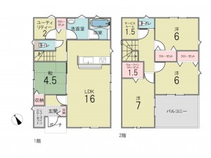 - カウンターキッチン、浴室乾燥機、シャンプードレッサー、ウォシュレット、複層ガラス、モニタ付インターホン、駐車場2台分、 トイレ2箇所、床下収納、24時間換気システム