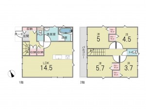 - カウンターキッチン、浴室乾燥機、シャンプードレッサー、ウォシュレット、複層ガラス、モニタ付インターホン、駐車場2台分、 トイレ2箇所、床下収納、24時間換気システム