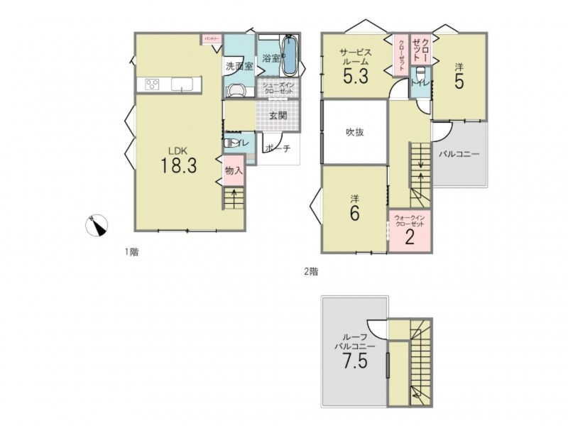 - シューズインクローゼット、ウォークインクローゼット、駐車場2台分、 トイレ2箇所、ルーフバルコニー