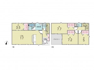 - カウンターキッチン、浴室乾燥機、シャンプードレッサー、ウォシュレット、複層ガラス、モニタ付インターホン、駐車場2台分、 トイレ2箇所、床下収納、24時間換気システム、ルーフバルコニー