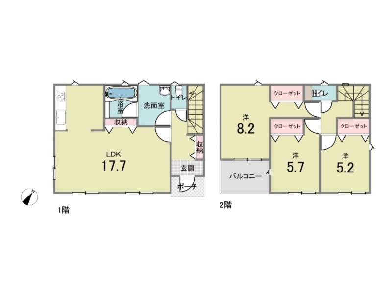 - 浴室乾燥機、シャンプードレッサー、ウォシュレット、複層ガラス、モニタ付インターホン、 トイレ2箇所、床下収納、24時間換気システム