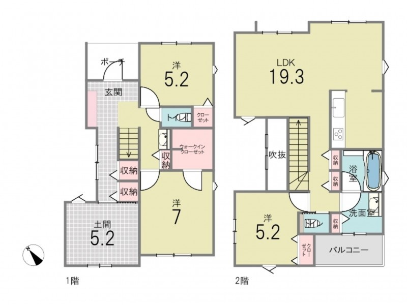 - ウォークインクローゼット、複層ガラス、モニタ付インターホン、駐車場2台分、 トイレ2箇所、宅配ボックス