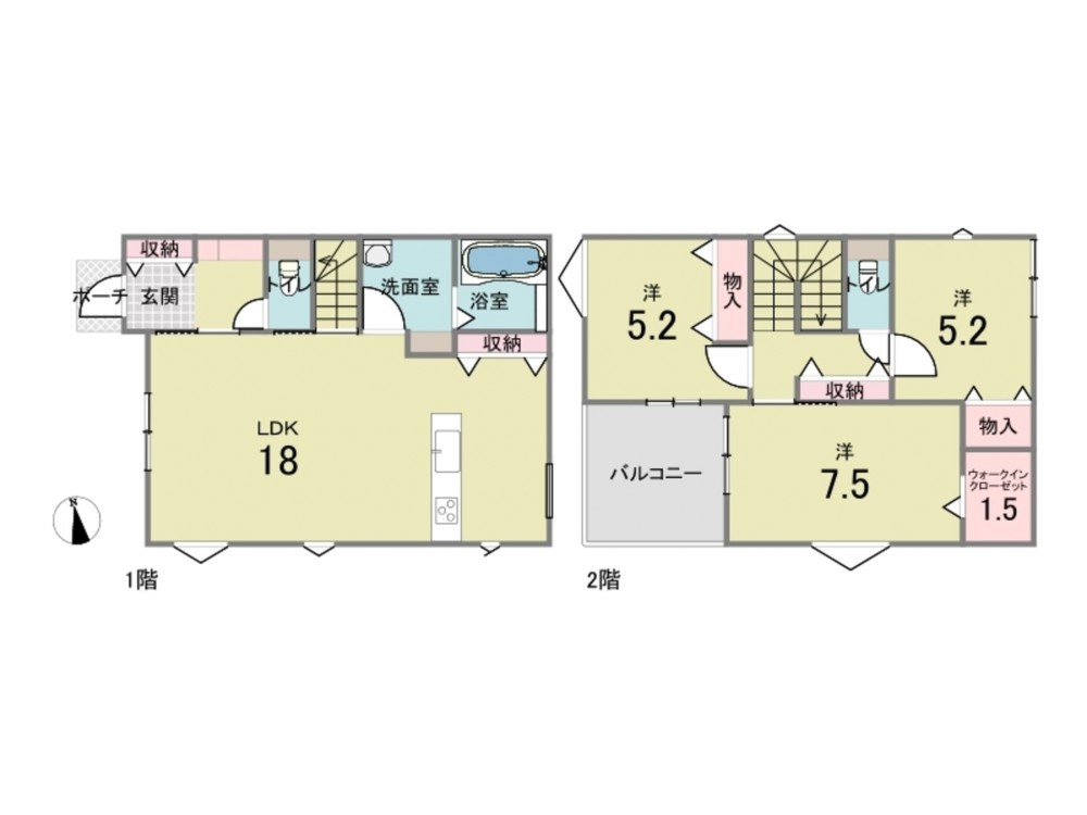- ウォークインクローゼット、駐車場2台分、 トイレ2箇所