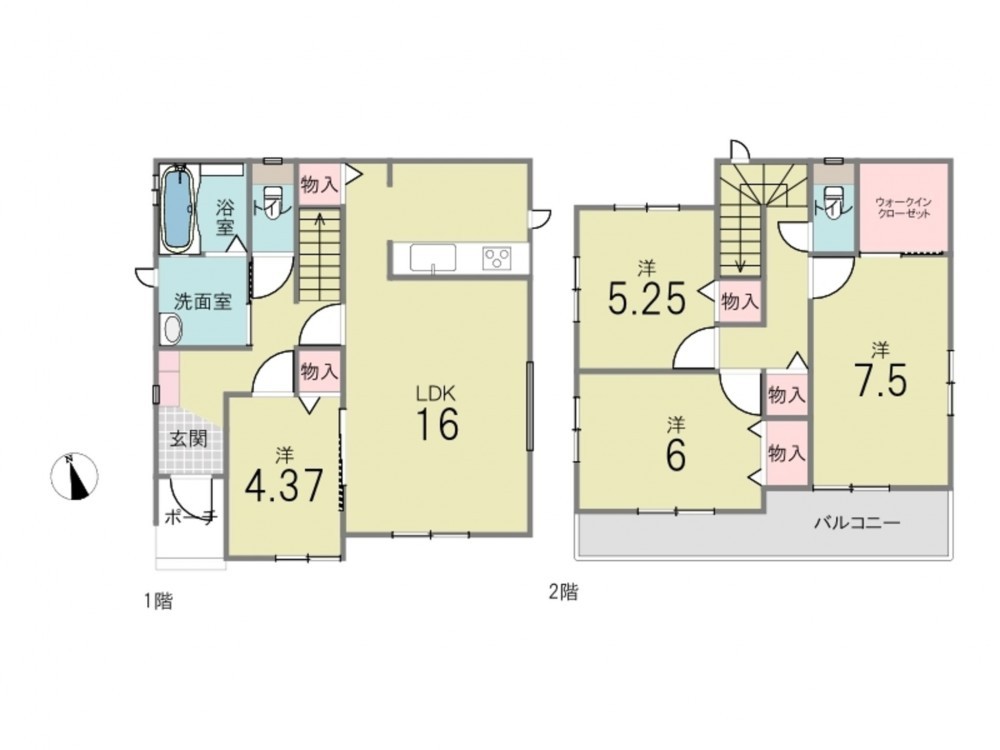 - 浴室乾燥機、シャンプードレッサー、ウォシュレット、ウォークインクローゼット、モニタ付インターホン、駐車場2台分、 トイレ2箇所、床下収納