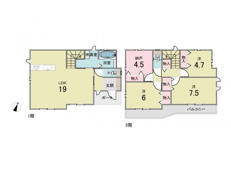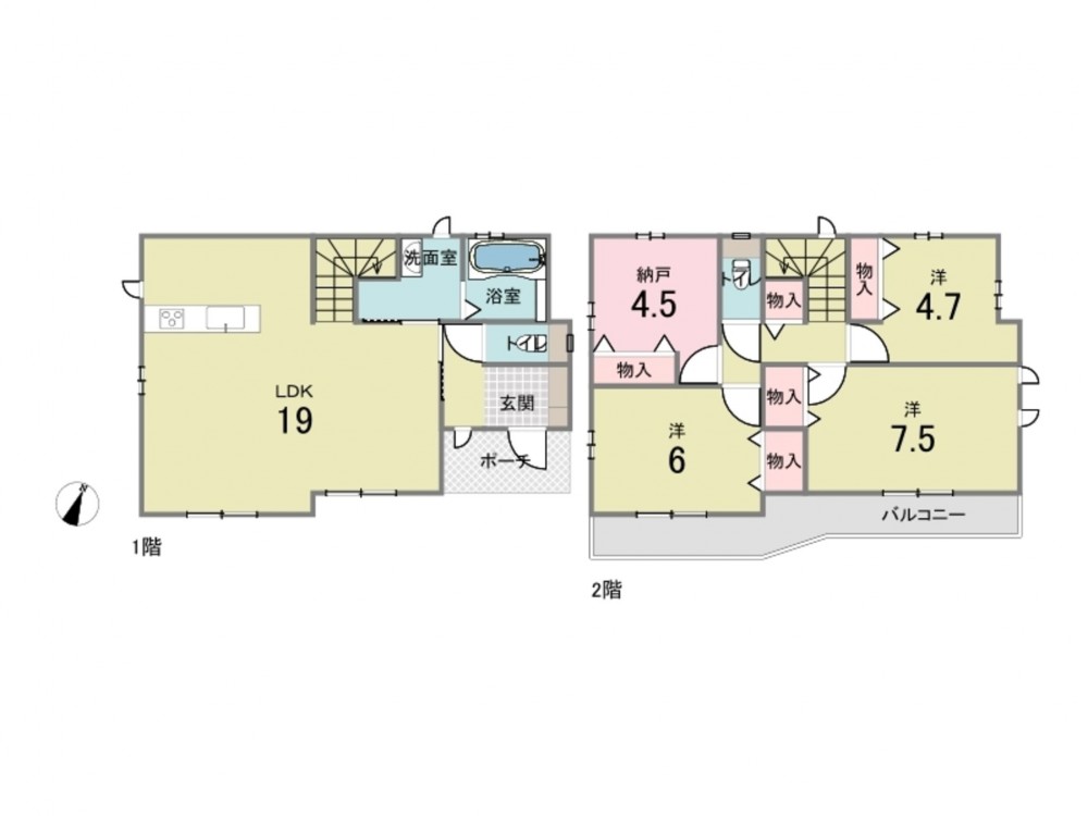 - カウンターキッチン、浴室乾燥機、シャンプードレッサー、浴室1坪以上、複層ガラス、モニタ付インターホン、 トイレ2箇所、床下収納、24時間換気システム