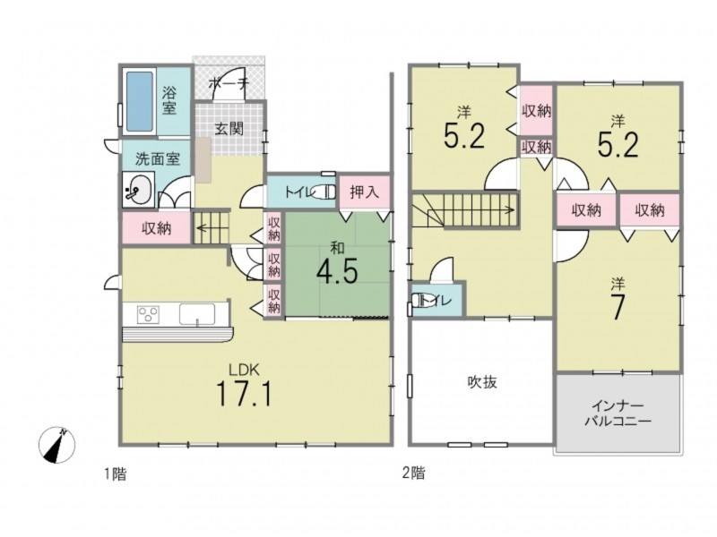 - カウンターキッチン、食器洗浄乾燥機、浴室乾燥機、モニタ付インターホン、駐車場2台分、 トイレ2箇所、床下収納、24時間換気システム