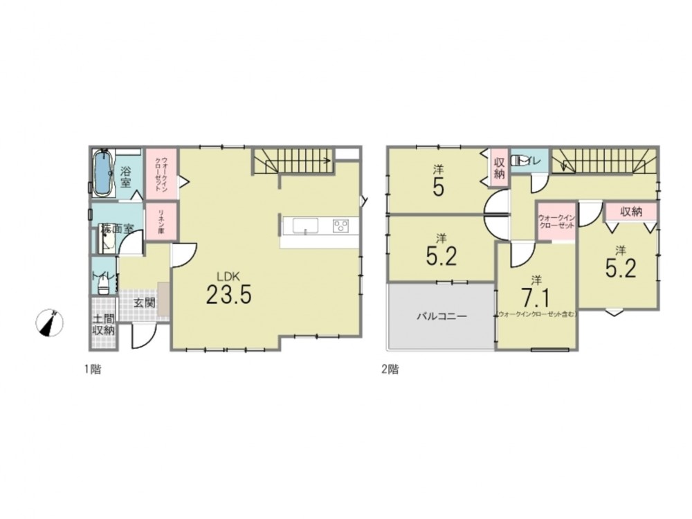 - 洗面室収納、シューズインクローゼット、ウォークインクローゼット、駐車場3台分、 トイレ2箇所、床下収納