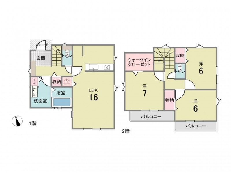 - 浴室乾燥機、シャンプードレッサー、ウォシュレット、複層ガラス、駐車場2台分、 トイレ2箇所、床下収納