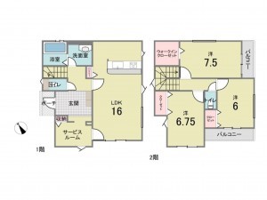 - ウォークインクローゼット、駐車場2台分、 トイレ2箇所