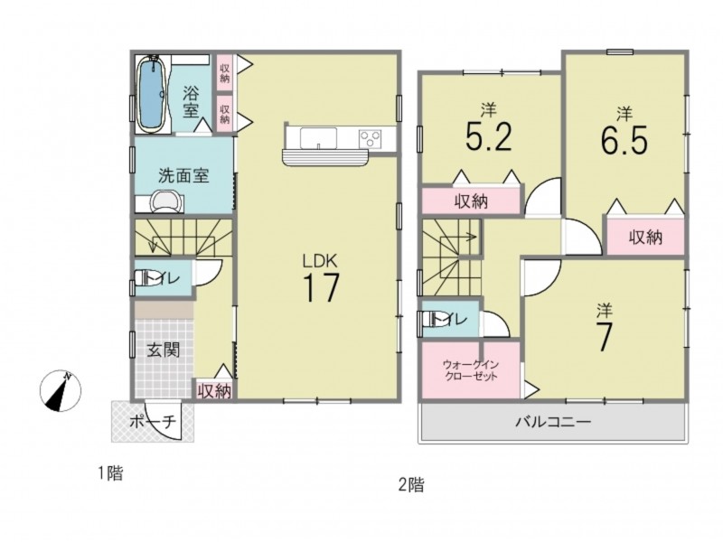 - カウンターキッチン、食器洗浄乾燥機、浴室乾燥機、シャンプードレッサー、浴室1坪以上、ウォシュレット、ウォークインクローゼット、モニタ付インターホン、 トイレ2箇所、床下収納