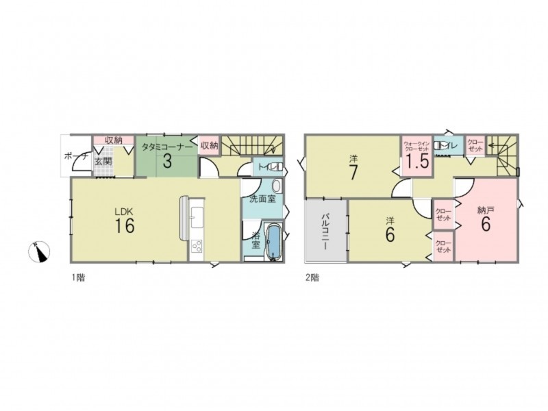 - カウンターキッチン、浴室乾燥機、シャンプードレッサー、ウォシュレット、ウォークインクローゼット、複層ガラス、モニタ付インターホン、 トイレ2箇所、床下収納、24時間換気システム