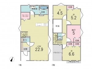 - 浴室乾燥機、ウォークインクローゼット、駐車場2台分、 トイレ2箇所