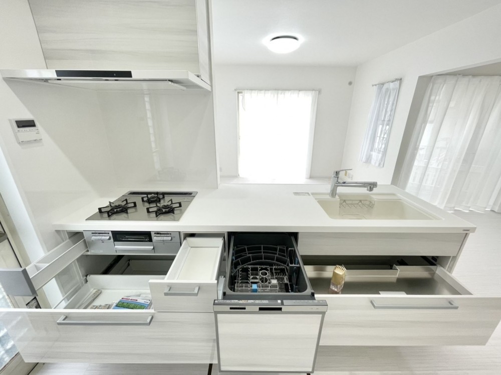 - カウンターキッチン、食器洗浄乾燥機、浴室乾燥機、シャンプードレッサー、浴室1坪以上、ウォシュレット、シューズインクローゼット、ウォークインクローゼット、モニタ付インターホン、駐車場2台分、 トイレ2箇所