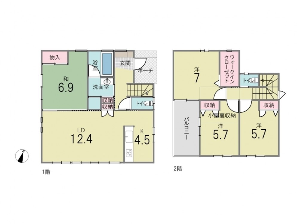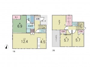 - ウォークインクローゼット、グルニエ(屋根裏部屋)、床暖房、オール電化、駐車場2台分、 トイレ2箇所、床下収納