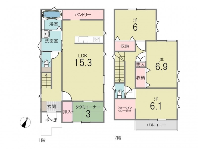 - 食器洗浄乾燥機、浴室乾燥機、シャンプードレッサー、浴室1坪以上、ウォークインクローゼット、複層ガラス、モニタ付インターホン、駐車場2台分、 トイレ2箇所