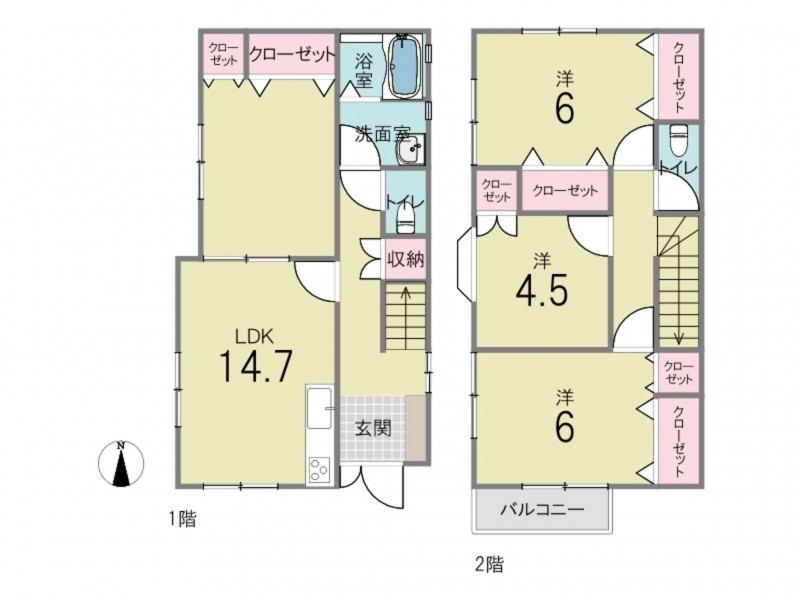 - モニタ付インターホン、駐車場2台分、 トイレ2箇所、床下収納