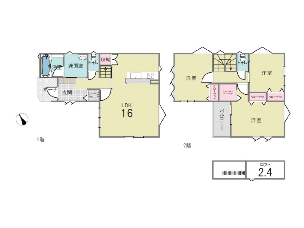 - カウンターキッチン、ウォークインクローゼット、ロフト、 トイレ2箇所