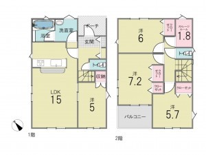 - カウンターキッチン、浴室乾燥機、シャンプードレッサー、ウォシュレット、モニタ付インターホン、 トイレ2箇所、床下収納、ルーフバルコニー
