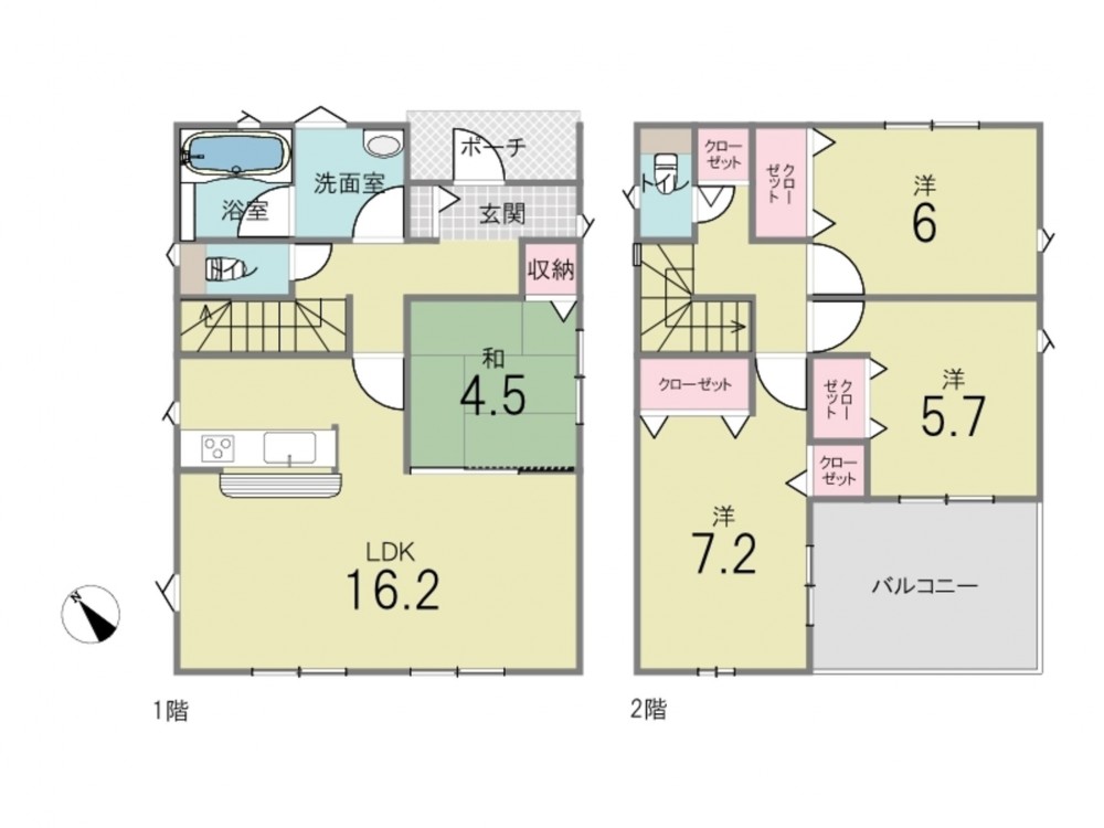 - カウンターキッチン、浴室乾燥機、シャンプードレッサー、ウォシュレット、モニタ付インターホン、 トイレ2箇所、床下収納、ルーフバルコニー