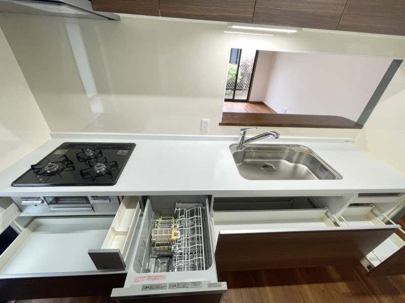 - カウンターキッチン、食器洗浄乾燥機、浴室乾燥機、シャンプードレッサー、ウォシュレット、ウォークインクローゼット、モニタ付インターホン、 トイレ2箇所、平坦地