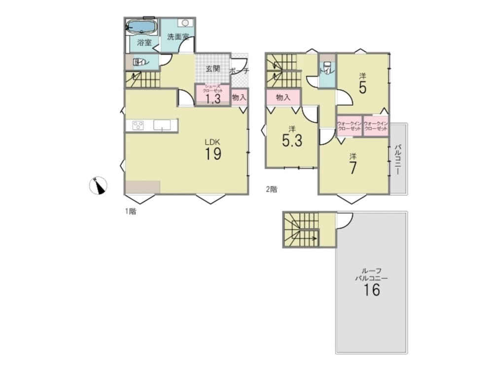 - ウォークインクローゼット、 トイレ2箇所、ルーフバルコニー