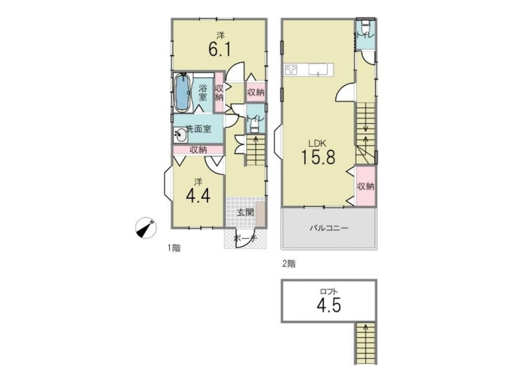 - ロフト、駐車場2台分、 トイレ2箇所、室内物干