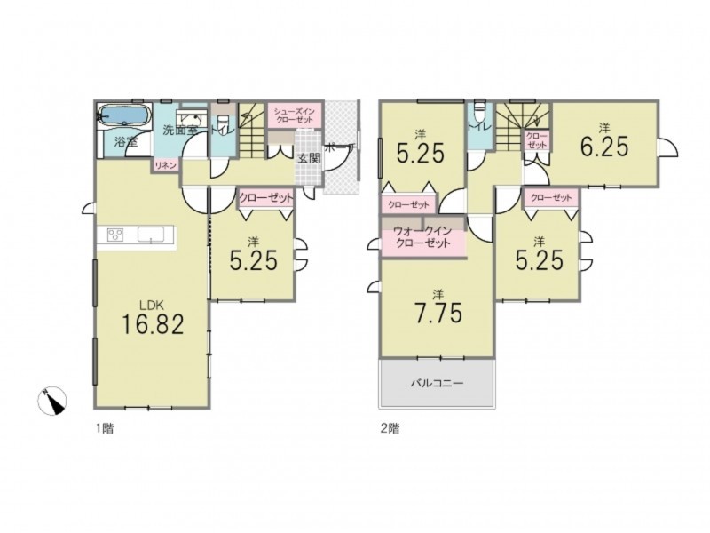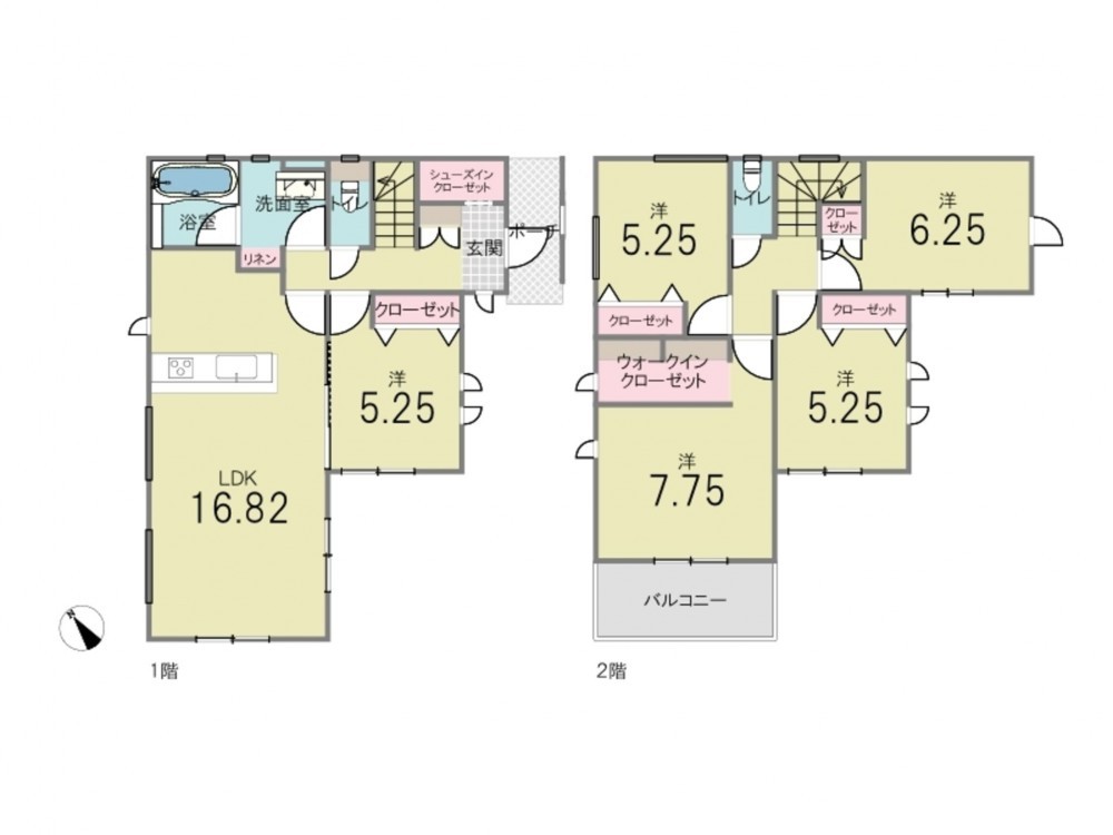 - カウンターキッチン、食器洗浄乾燥機、浴室乾燥機、シャンプードレッサー、ウォシュレット、浴室TV、シューズインクローゼット、ウォークインクローゼット、複層ガラス、モニタ付インターホン、グルニエ(屋根裏部屋)、駐車場2台分、 トイレ2箇所、床下収納
