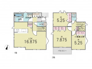 - 食器洗浄乾燥機、浴室乾燥機、シャンプードレッサー、洗面室収納、浴室TV、複層ガラス、モニタ付インターホン、グルニエ(屋根裏部屋)、駐車場2台分、 トイレ2箇所、床下収納